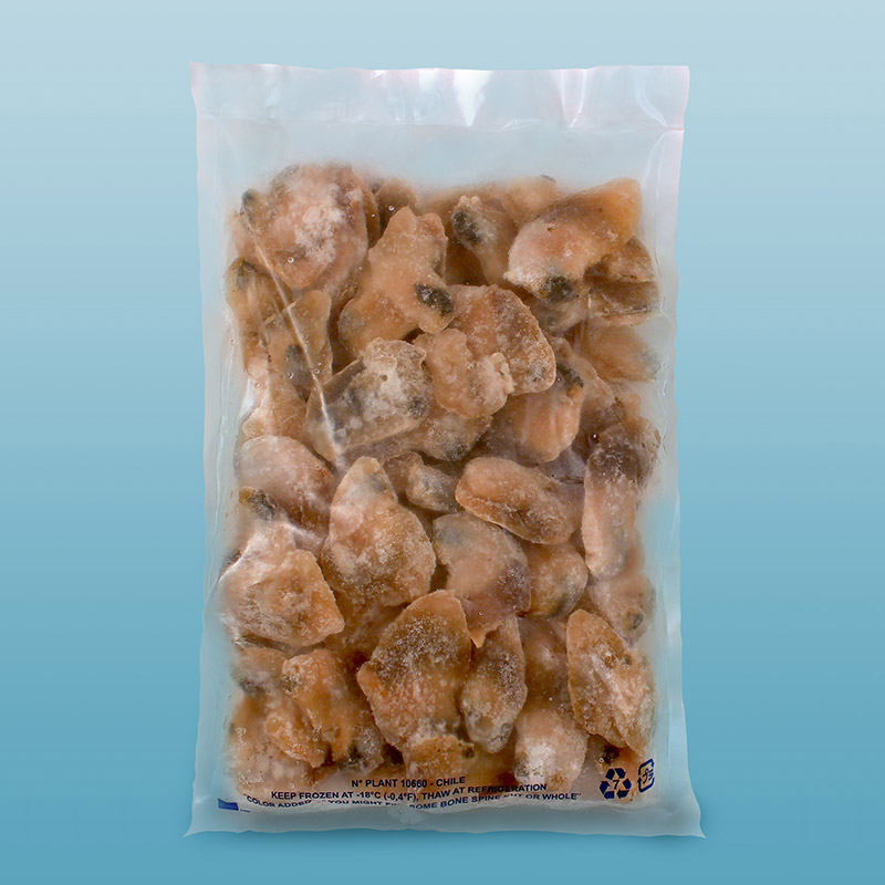 • Lenguas de machas crudas congeladas IQF, Caja PE 10 x 1 Kg bolsa LLEDP.